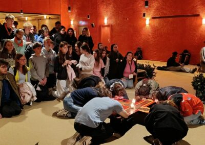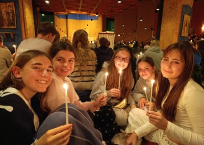 Avec 2000 autres jeunes européens (500 grands jeunes de Suède, Autriche, Allemagne, et 1500 lycéens français et belges…), les jeunes ont pu échanger autour de textes de la bible, sur la thématique « pélerins d’espérance ». Ils ont participé aux 3 prières quotidiennes des frères de Taizé, avec notamment la célébration de la croix rappelant le vendredi saint et la célébration de la lumière rappelant la veillée pascale.